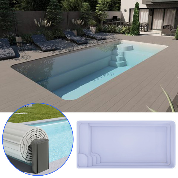 Kompakter und hochwertiger Pool mit modernem Grundriß für nachhaltigen Badespaß.