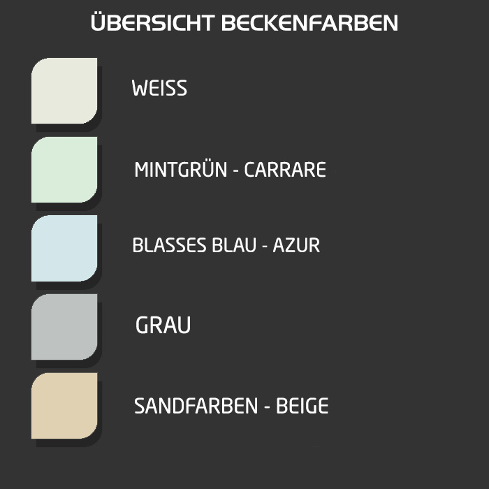 Die angegebenen Beckenmaße können fertigungs- und materialbedingt ca. +/- 1 % variieren.