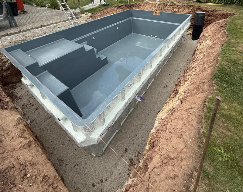 - Werkseitige Ausschnitte und Vormontage der Einbauteile (Skimmer aus Transportgründen nicht vormontiert)