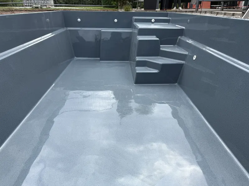 Die Becken werden serienmäßig in einem Guss gefertigt, in einem Stück geliefert und eingebaut.