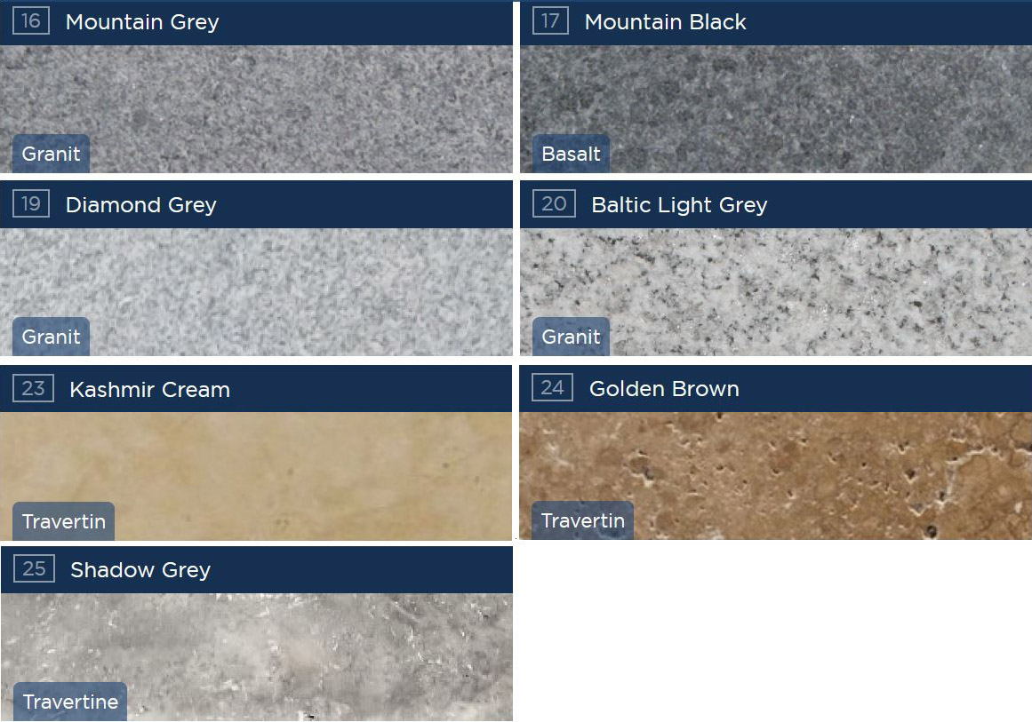 Exklusive Beckenrandsteine aus Granit, Basalt, oder Travertin.