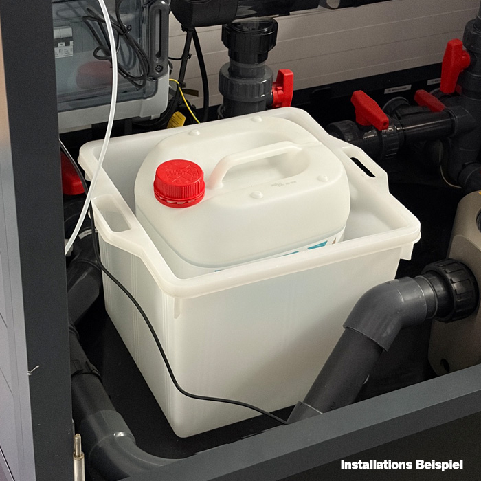 Sollte ein Behälter Undichtigkeiten aufweisen, werden austretende Flüssigkeiten sicher in der Wanne aufgefangen.